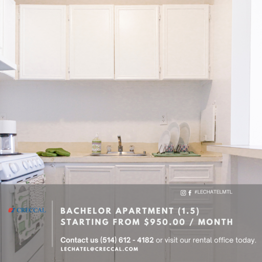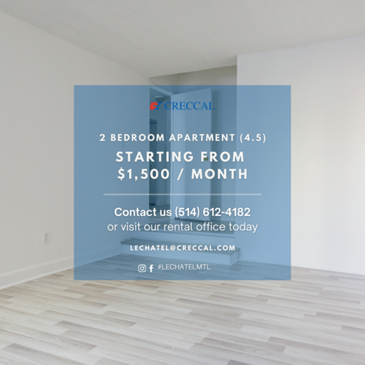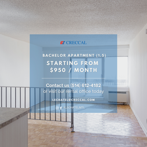 ***PROMOTIONS AVAILABLE*** With views overlooking the beautiful skyline of downtown Montreal, Le Chatel will make you find the tranquility that fits perfectly with the thrill of an urban lifestyle. In the heart of the creative city of Montreal, Le Chatel is an established apartment building where our residents can enjoy the proximity of restaurants, stores, universities and much more.The establishment is also located at just a few seconds from the metro station Guy Concordia and several bus lines making your everyday transportation easier. Le Chatel has 24/7 doorman services with fob card and intercom systems making your safety our priority.A full-sized indoor swimming pool and an in-house laundry facility is conveniently located in the building. Our one-bedroom apartments come equipped with plenty of living and storage space. All utilities and amenities included in the rent except for cable, telephone, internet, and parking.--------------------------------------------------------***PROMOTIONS EN COURS***Tout au centre de la brillante ville de Montréal, Le Chatel est une résidence d'appartements ou nos habitants peuvent profiter de la proximité; des restaurants, magasins, universités et bien plus encore. Le Chatel est situé à quelques secondes de la station de métro Guy Concordia ainsi que plusieurs lignes de bus facilitant vos déplacements de tous les jours.Avec un système de cartes d'accès et d'intercom, Le Chatel garde comme priorité; la sécurité; de ses résidents avec des mesures mises en place 24h/24 et 7j/7. A l'intérieur de l'immeuble se trouve une piscine intérieur chauffée ainsi qu'une buanderie.