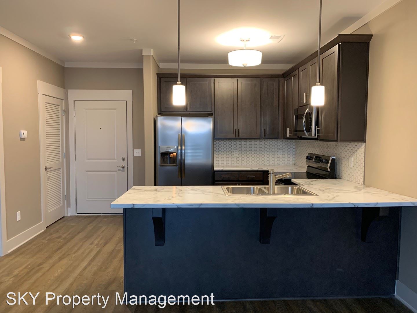 Lenox Place - Second Floor Open Concept Flat Stainless Steel Kitchen Appliances Tile Kitchen Backsplash Hardwood Laminate Flooring Throughout Juliet Balcony Facing Parking Lot Water Utilities Included Washer and Dryer Set Included